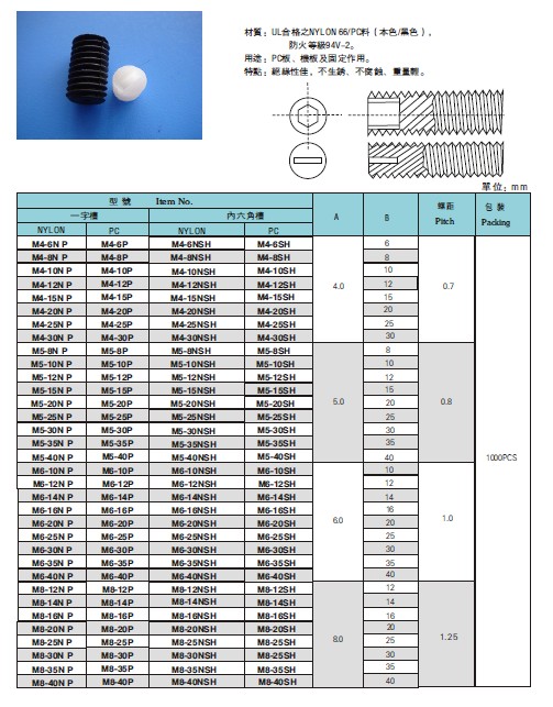 尼龙螺丝系列